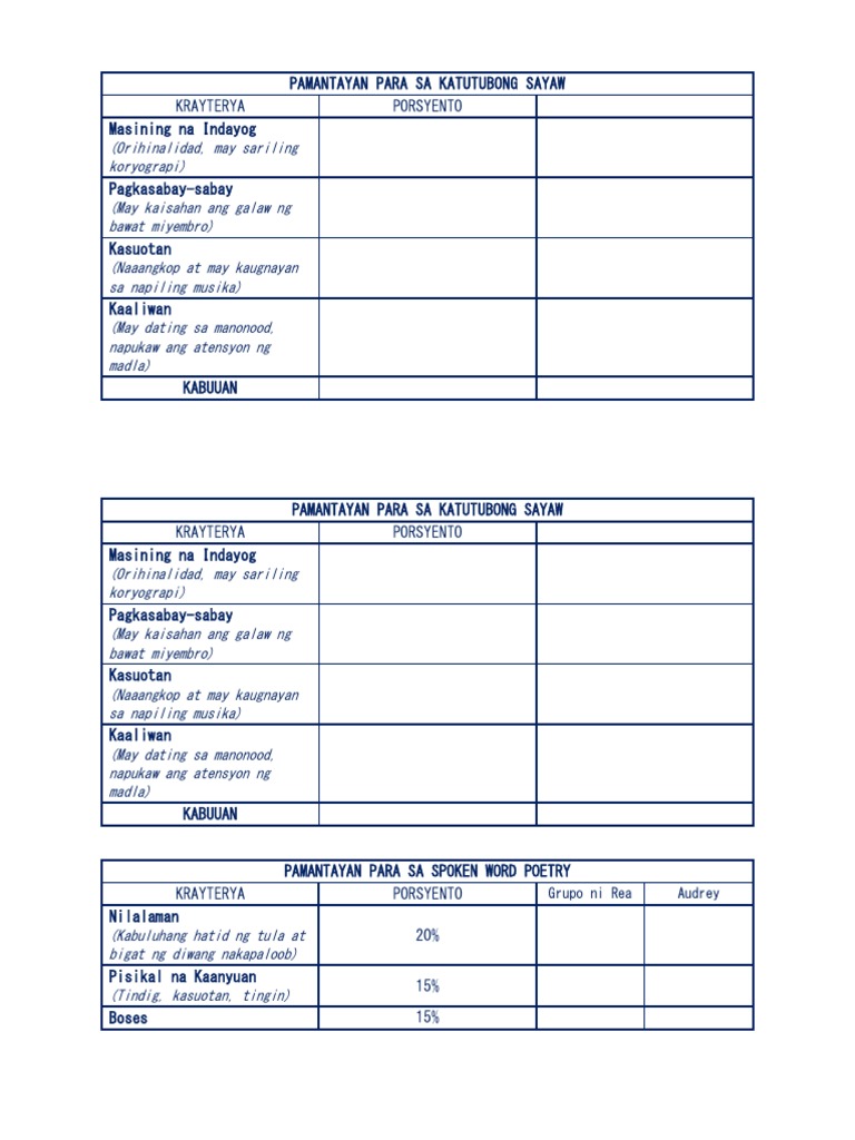 Pamantayan Para Sa Katutubong Sayaw Pdf